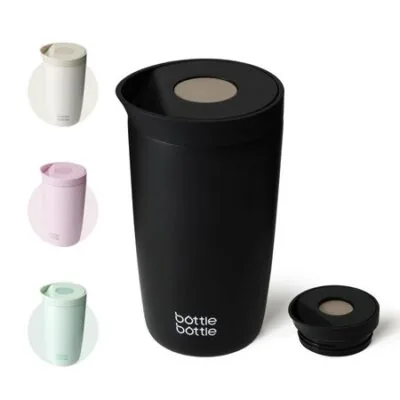 БУТЫЛКА БУТЫЛКА Вакуумный термос Кружка для кофе и поддерживает горячим или из нержавеющей стали Портативный черный тамблер, 350 мл, Закрытие одним касанием, Герметичный, Изолированный, Чай, чёрный