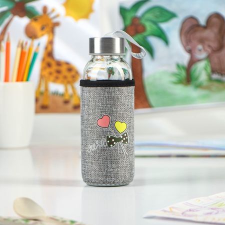 Бутылка для воды «Бантик», 300 мл, h=16.5 см, в чехле, стекло, МИКС