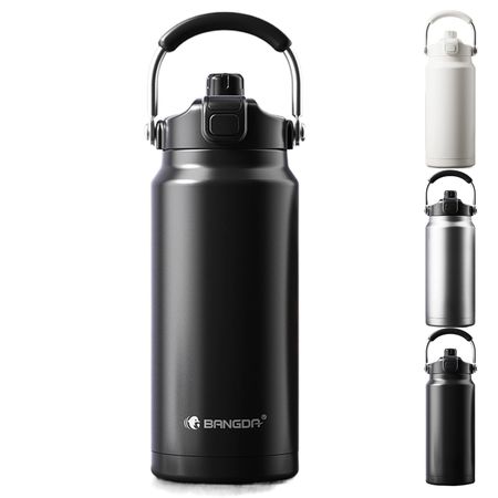 Бутылка для воды большого размера Direct с удобной термической обработкой из нержавеющей стали 316 без ручки из нержавеющей стали черного цвета, 1,9 литра, стильная, термическая, прохладная, емкость, чёрный