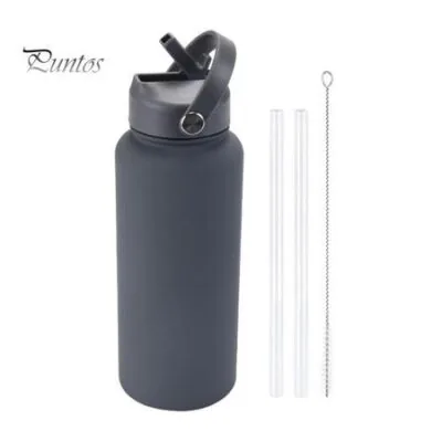 Бутылка для воды из нержавеющей стали емкостью 1000 мл с соломинкой, не содержащая бисфенола-А, герметичная изоляция, 24 часа в холоде, 12 часов в горячей спортивной бутылке темно-серого