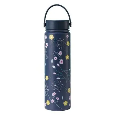 Бутылка для воды из нержавеющей стали с цветочным принтом, кофейная кружка, вакуумная удобная чашка, для путешествий на открытом воздухе, для офиса синий