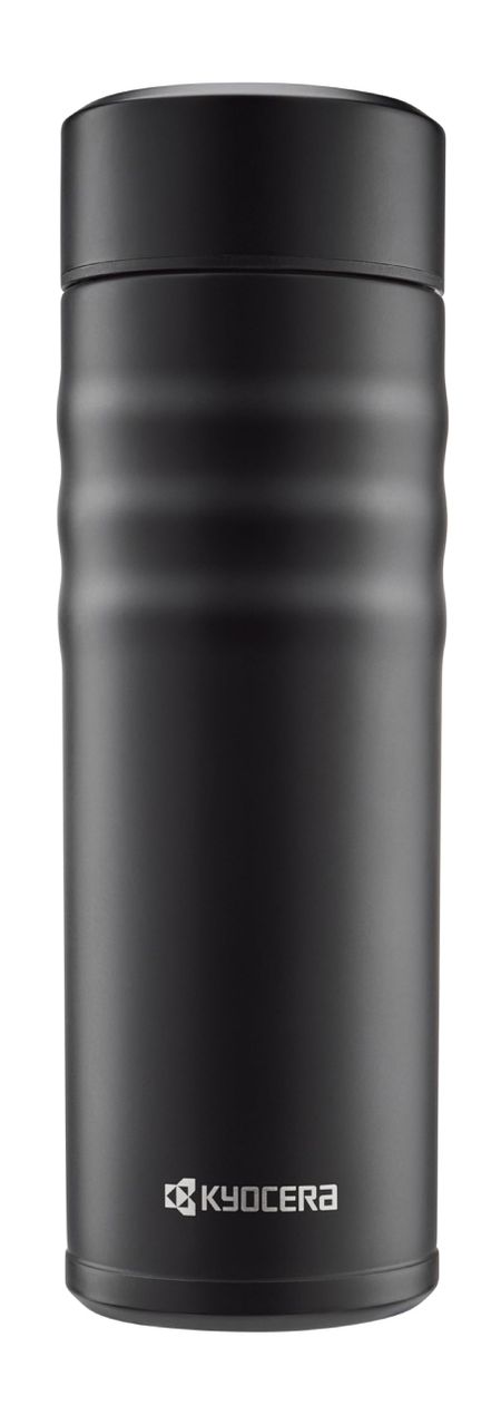 Бутылка для воды Kyocera Керамическая бутылка для кофе Кружка Бутылка 500 мл Винтового типа Внутренняя керамическая обработка Вакуумная изоляционная структура Сохранение тепла Холод чёрный