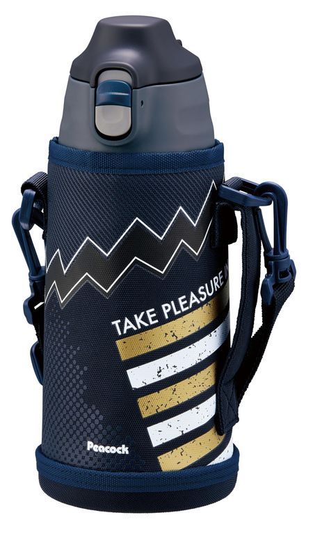 Бутылка для воды Peacock 2WAY, черная, синяя, 800 мл, чашка для питья, кружка, бутылка-термос AKB The-peacock, детская, термальная/холодная, с одним нажатием ASG-W82