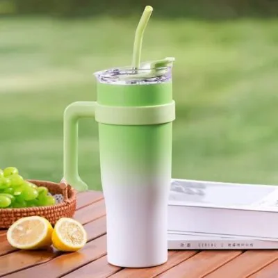 Бутылка для воды с трубочкой, прямой вакуум, большой стакан из нержавеющей стали 316 с функцией нагрева и охлаждения, с легко очищаемой трубочкой, стакан, для питья, 1250 мл, изолированный, емкость, зелёный
