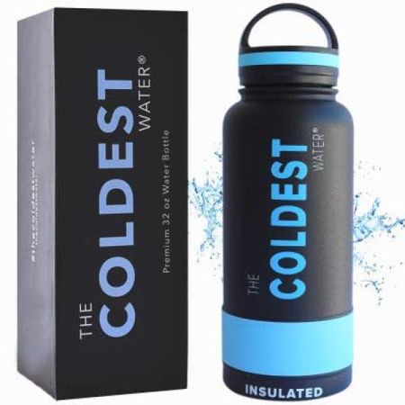 Бутылка, которая растапливает лед на 36 Самая холодная бутылка для воды Самая холодная вода Всесезонная Сохраняет тепло 13 часов Вакуумная изоляция Прямое питье 32 унции [Спорт синий