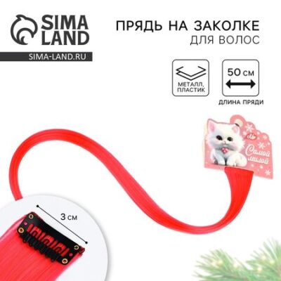 Цветная прядь для волос новогодняя «Котенок-мур», на заколке, 50 см Сима-ленд