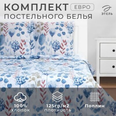 Постельное белье «Этель» евро Flora and spring (вид 1) 200х217 см, 220х240 см, 70х70 см -2 шт, поплин 125 г/м2. Этель