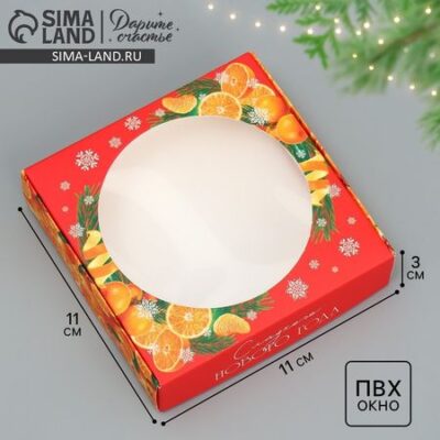 Коробка для макарун с низкими бортами «Сладкого нового года», 11 х 11 х 3 см Дарите Счастье