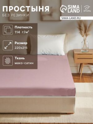 Простыня 2 спальная «Этель» Twilight Mauve, 220×215 см, хлопок 100%, мако-сатин. Этель