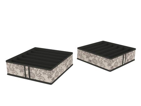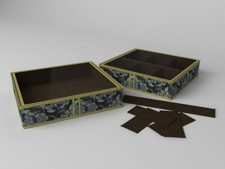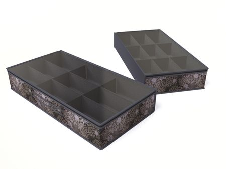 Короб размером 56х52х12 см., предназначен для хранения обуви. Изделие оснащено 6 отделениями. Перегородки в данной модели съемные, жесткие.
