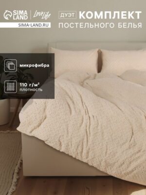 Постельное белье LoveLife Tufting дуэт "Квадрат" 143*215см-2шт,230*240см,50*70см-2шт, цвет бежевый, 110 г/м. LoveLife