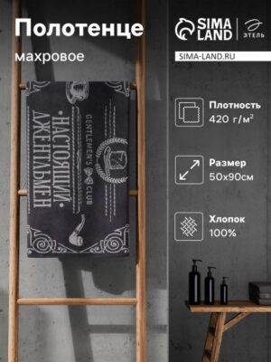 Полотенце махровое Этель «Джентльмен», 50×90 см, 420 г/м², серое. Мужское махровое полотенце для тех, кто ценит лаконичность и качество в деталях.