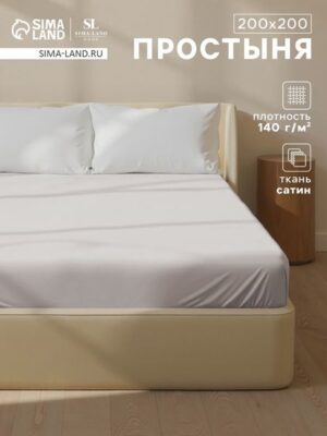 Простыня на резинке евро SL Home Beige, 200×200+30 см, сатин Sima-Land Home