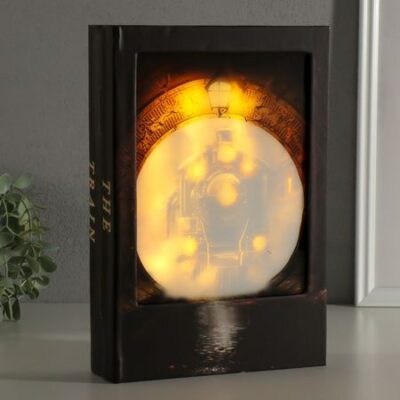 Шкатулка — книга световая «Поезд в туннеле», дерево, искусственная кожа, 28×19×6 см