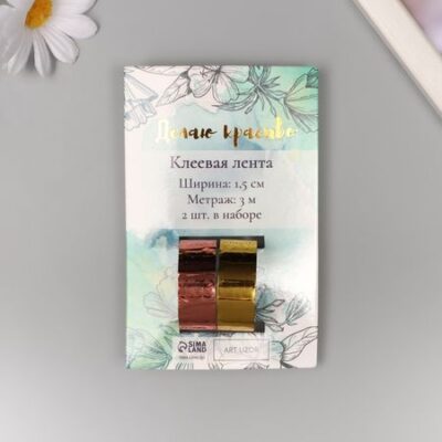 Клейкая лента декоративная пластик «Металлик. Золото, бронза», набор 2 шт., 1.5 см, дл. 3 м Арт Узор