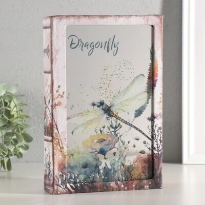 Шкатулка книга — сейф «Стрекоза и цветы», дерево, искусственная кожа, зеркало, 24×16×5 см