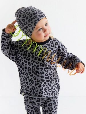 Тёплый демисезонный комплект для малышей из рибаны с начёсом идеально подходит для прохладных осенних и зимних дней. Модель выполнена в сером меланже