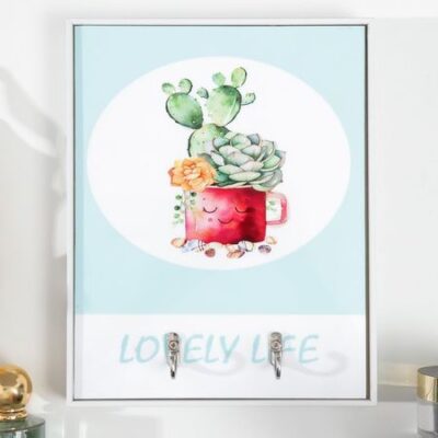 Крючки настенная «Кактусы в кружке», дерево, 2 крючка, панно декоративное, 19×24 см