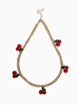 Позвольте представить уникальное ювелирное украшение — цепь с подвесами «Вишня», которое обязательно привлечёт восхищённые взгляды своим стилем и качеством исполнения.Изюминка аксессуара заключается в яркой красной вишенке, создающей контраст с мягким сиянием золотых элементов. Цепочка выполнена из высококачественного металла, покрыта позолотой, придавая изделию изысканный блеск и долговечный вид.Преимущества цепи с подвесами:Элегантный дизайн: уникальный подвес в виде спелой вишни выполнен из пластика, покрытого глянцевой поверхностью, делая аксессуар выразительным элементом любого образа.Комфортная длина: длина цепи составляет 45 см, что позволяет носить её свободно, подчёркивая шею и создавая гармоничный баланс пропорций.Нейтральная палитра: сочетание красного и золотистого цветов универсально сочетается с любыми цветами гардероба, будь то вечернее платье или дневной костюм.Качество материалов: металл и пластик проходят строгий контроль качества, обеспечивающий устойчивость покрытия и отсутствие аллергических реакций.Украшение станет отличным выбором для тех, кто ценит яркие акценты и любит экспериментировать с образом, добавляя нотку весёлого настроения и праздничного настроения своему облику.
