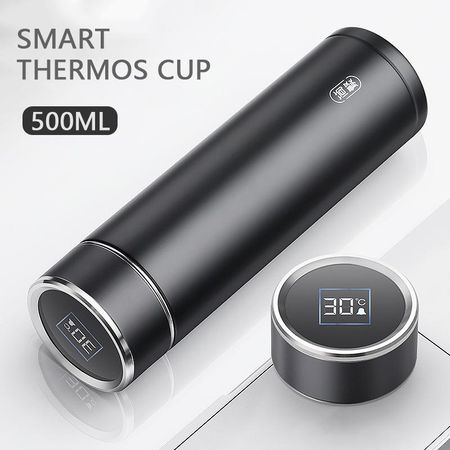 Чайник из нержавеющей стали 316 с функцией разделения температуры, умный вакуумный стакан для автомобиля, напоминание о времени, изоляция, 500 мл 500ml чёрный
