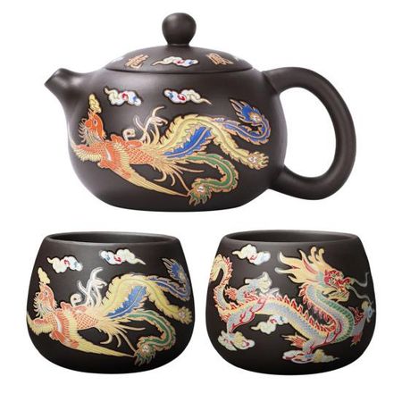 Чайник Китайский Дракон Феникс Благоприятный чайник Цзыша из глины гунфу для рассыпного чая Чайники ручной работы с уникальным эффектом изменения цвета чая B