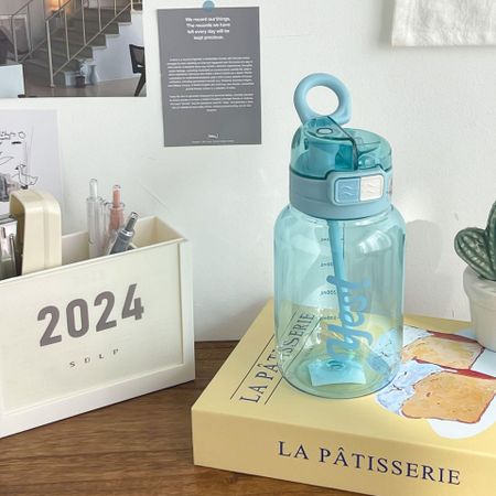 Чашка для воды, летняя двойная чашка для напитков, портативная пластиковая соломенная чашка, удобная чашка для студентов и студентов, чашка для воды 600ml синий