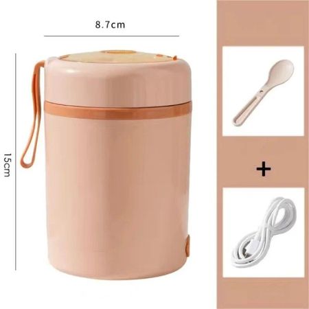 Чашка для завтрака из нержавеющей стали, подключаемая через USB, изолированная чашка для супа, чашка для каши, уличная портативная чашка для воды, изолированная коробка для обеда с подогревом красный