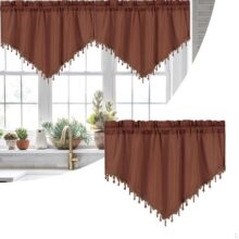 Комплект многоярусных штор в фермерском стиле с изящным декором в виде кисточек