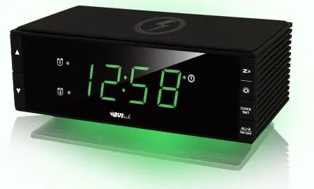 BV-433GKQ BVItech настольные часы с бесконтактной зарядкой для телефона. Декоративная подсветка делает дизайн данных часов модным и стильным. Резервное питание предназначено только для продолжения отсчета времени, когда отсутствует электричество, при этом цифры светиться не будут.