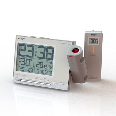 32764 Rst часы с проекцией времени с метеостанцией, выполненные в корпусе цвета слоновой кости, предназначение которых заключается не только в определении времени, дня недели и фазы луны, но и в точных измерениях комнатных температур, проецировать данные дисплея на стену или на потолок. Часы настольные с проекцией 32764 действительно интеллектуальное устройство, оснащенное целым рядом различных настроек, благодаря которым каждый сможет собрать прибор под себя .