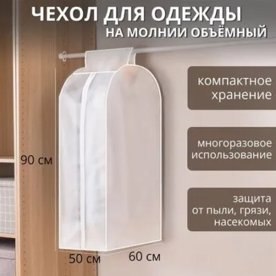 Мы всегда стараемся сохранять наши вещи так, что бы они радовали нас как можно дольше, и их внешний вид оставался прежним как и в день покупки. Чехлы для одежды предназначены для хранения и перемещения меховых изделий, пальто, мужских костюмов, свадебных платьев и другой одежды. Они защищают любую одежду от грязи и пыли, от моли, а также повреждений, связанных с транспортировкой и хранением одежды.Преимущества:Используя чехол для одежды, вы значительно экономите пространство. Это особенно актуально, если у вас много вещей и маленький шкаф.Опрятный внешний вид. Больше никаких платьев, кофт и юбок, висящих вразнобой. Аккуратные чехлы позволяют рассортировать одежду и скрыть её от посторонних глаз. Для людей, использующих стойки вместо обычного шкафа— это самый оптимальный вариант.Чехол надёжно защищает одежду от пыли и грязи, от насекомых, механических повреждений или от возможного выцветания.Не даёт одежде изменить форму во время длительного хранения, препятствует образованию заломов.Особенности чехлов для одежды:Специальный материал позволит вашей одежде «дышать».При бережном обращении срок службы такого чехла не ограничен.В них можно хранить не только одежду, но и одеяла, подушки, постельное белье.Чехол «запечатывается» при помощи прочной молнии.Важно помнить:предварительно подготовьте вещи к хранению на длительный срок: почистите их, расправьте складки;выбирайте чехол оптимального размера: вещи не должны загибаться снизу;не рекомендуется вешать сразу несколько объёмных вещей в один чехол: они могут помяться.