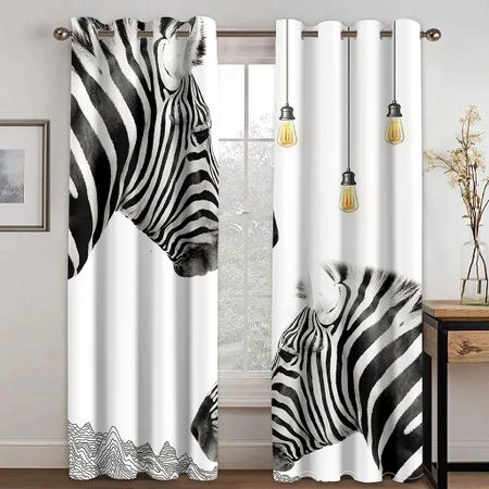 Черно-белая текстура зебры 3D цифровая печать занавески для кухни короткие оконные занавески 2 панели принт с изображением меха животных 3D шторы 50W160H(CM)x2PanelGrommet Top светло-серый
