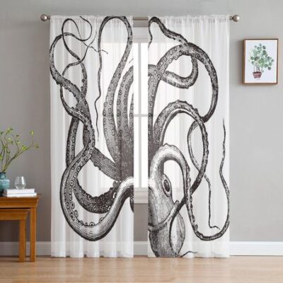 Главная » Все для дома Черно-белые шторы из тюля с изображением осьминога для гостиной, современные занавески из шифона и прозрачной вуали для кухни 135W x 114H(cm) Просмотров 11 A Family Of Home Textiles