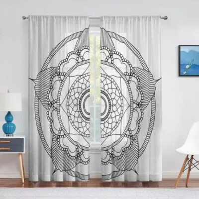 Черно-белые шторы из тюля с рисунком мандалы в стиле бохо для гостиной, спальни, прозрачная шифоновая вуаль, занавеска для окна 1 PCS W100XH250cmGrommet Top