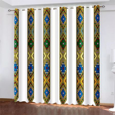 Черно-белые шторы Saba Telet Pattern в эфиопском эритрейском стиле из 2 предметов, фильтрующие свет, для гостиной, спальни, кухни, оконной драпировки W50H130(CM)x2Hook