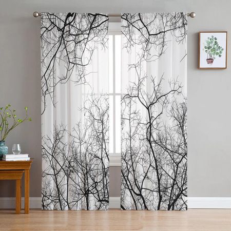 Главная » Все для дома Черно-белые ветки прозрачные шторы для спальни гостиная украшение окна занавеска для кухни тюль вуаль органза шторы W135 x H245cm x1Grommet Top Просмотров 1 Yiran Furniture