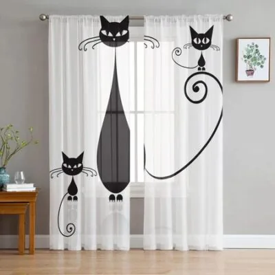 Главная » Все для дома Черные кошки животные белые шифоновые прозрачные шторы для гостиной спальни украшения дома окна вуали тюль занавески W135 x H137cm x1Grommet Top Просмотров 9 Versatile Home Furnishing