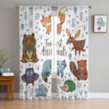 Прозрачная занавеска с изображением лисы, енота, совы для спальни, тюлевая занавеска из вуали для кухни, гостиной, Декор, обработка окна 135W x 114H(cm)