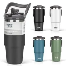 TYESO 1050ml Tumbler with Insulated with Vacuum Wide Large Direct for and Outdoor for Boys and Girls Straw, Coffee/Water Bottle/Thermo Flask, Handle, чёрный