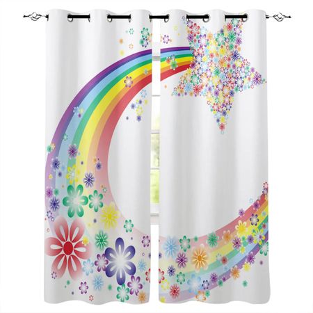 Цвет Радуга Красный Желтый Синий Краска Окно Трафаретная печать Дизайн Офис Внутренние Оконные Шторы Кухонные Шторы Домашние Шторы 2x60Wx50H(CM)Grommet Top