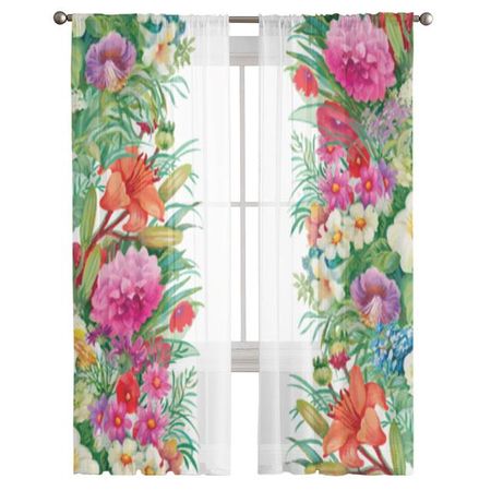 Цветочное искусство акварель Роза Тюль оконная занавеска для гостиной современная прозрачная занавеска для спальни кухонные шторы на заказ 135W x 114H(cm)