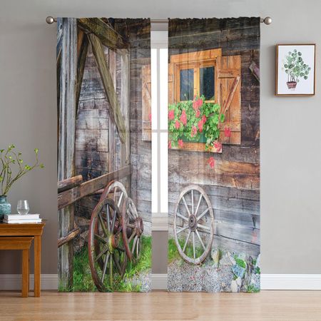 Главная » Все для дома Цветочное колесо, окно, старая деревянная хижина, тюлевые прозрачные оконные шторы для гостиной, спальни, современная вуаль, занавески из органзы, шторы W135 x H115cm x1 Просмотров 12 Factory Discount Outlet