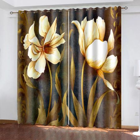 Цветочные акварельные шторы с высоким затенением для кухни, занавески для гостиной, современные занавески для спальни, оконные шторы, 2 шт. W55 X H120cm X 2Grommet Top