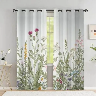 Цветочные шторы, черно-белые шторы с листьями для спальни, цветочные растения, травы, классические роскошные шторы для гостиной, 2 панели W53.5 X H213cm X 2