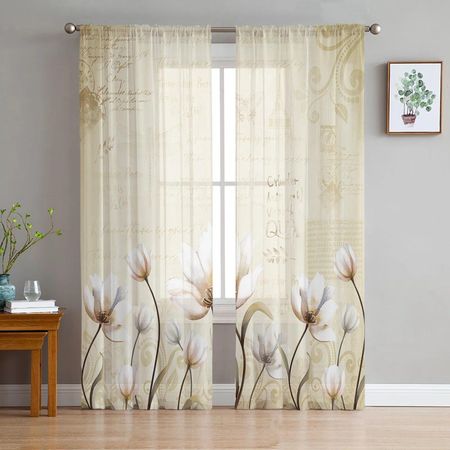Цветок Ретро Тюльпан Растение Пасторальный Стиль Спальня Прозрачные прозрачные Шторы Праздничное Украшение Окна Вуаль Тюлевая Занавеска 135W x 114H(cm)