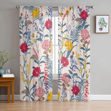 Цветы плотные листья лепестки современные тюлевые шторы с принтом для спальни, декора балкона, окна, креативная модная домашняя прозрачная занавеска 135W x 114H(cm)