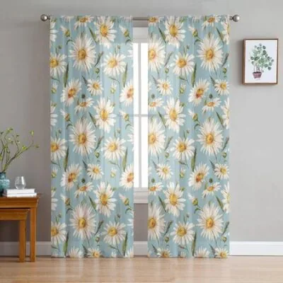 Дейзи акварельная текстура прозрачная вуаль оконные шторы тюлевые шторы гостиная украшение для балкона шторы 135W x 114H(cm)