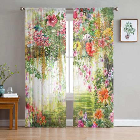 День благодарения Осенние растения и полевые цветы Прозрачные занавески Декор для дома Тюль Вуаль Шторы для гостиной Спальня W135 x H215cm x2Grommet Top