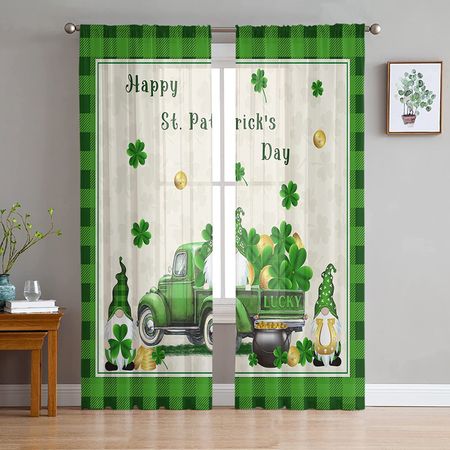 День Святого Патрика Прозрачные Шторы Трилистники Золотая Пивная Шляпа Вуаль Шторы Зеленые Листья Счастья Оконные Шторы Для Спальни Гостиной 1 PCS W100XH250cmGrommet Top