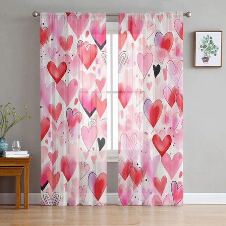 День святого Валентина акварель любовь ручная работа прозрачные шторы гостиная спальня вуаль занавеска на окно балкон кухня тюлевые шторы 135W x 114H(cm)